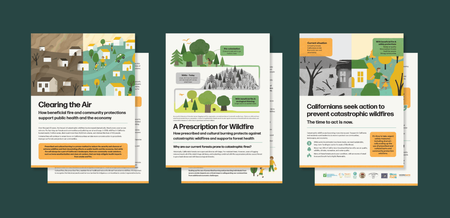 The materials we created featured illustrations that explain how beneficial fire helps prevent catastrophic fires and contributes to a better future for Californians. We also helped advocates make the case to state leaders with an op-ed in the Sacramento Bee that called for a substantial state budget allocation for proactive wildfire and forest resilience efforts.